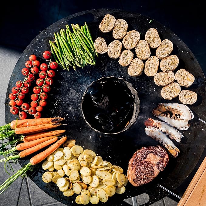 La surface généreuse de 80 cm transforme véritablement l’approche culinaire autour du brasero. Au-delà des grillades traditionnelles, la plaque permet la réalisation de paellas géantes, de légumes sautés en grande quantité, ou encore de crêpes et galettes pour les petits-déjeuners en plein air.